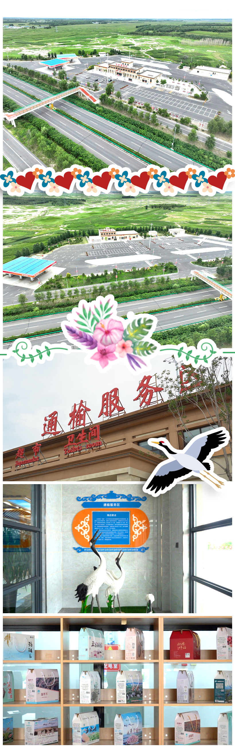 通榆服务区位于G1015铁科高速公路k733+500公里处,行政区域为白城市通榆县,距离通榆县城5公里。内设有加油站点,供应汽油、柴油,并配备充电桩,可满足新能源车辆补能需求。驻足休憩时可邂逅独特的丹顶鹤元素。